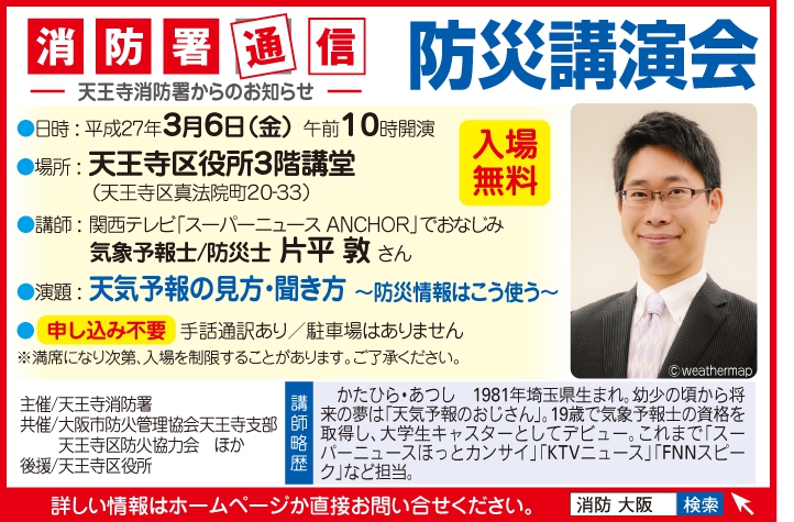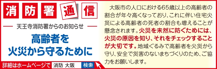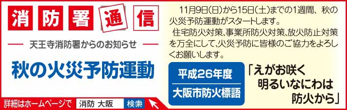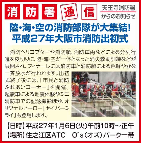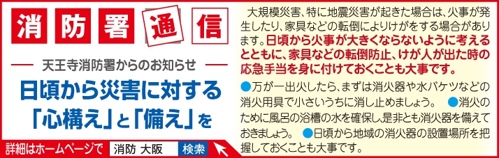 これからも、災害に対する備え、火災予防をよろしくお願いします。http://www.city.osaka.lg.jp/shobo/