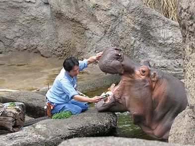 ヒツジの毛刈り カバの「テツオ君」の歯磨き