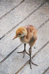 希少種であるナベヅルのひな1羽が7月24日に誕生。東京の井の頭自然文化園から昨年12月にオスを迎え入れ、12年ぶりに孵化(ふか)に成功しました。写真は8月3日現在。