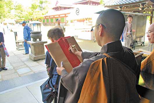 絵柄は、210件の候補から同寺の僧侶と職員が投票で54件を選びました。五重塔や西大門などの建物のほか、「聖霊会(しょうりょうえ)」や「どやどや」といった行事も見ることができます。