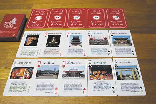四天王寺でこのほど、オリジナルトランプ「四天王寺厳選五十四図」が完成。同寺の主要な建物や伝統行事、文化財などが美しい写真と説明文付きで紹介されており、同寺の歴史と魅力を知ることができます。価格は900円。楽舎と和労堂で販売中。
