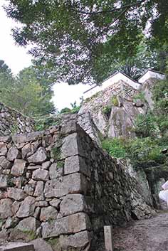 旅行当日は天候に恵まれ、順調に旅が始まりました。まず、お目当ての〝天空の城”備中松山城への登城です。この城は、できるだけ現地の山にある石や木材を利用して石垣や天守閣が築かれたそうです。戦国時代には毛利
