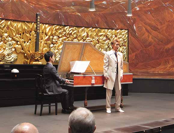 「西洋の教会」をイメージしてつくられた三千佛堂は、天井から自然光が降り注ぎ荘厳な雰囲気に。心地よく響くチェンバロの音色に観客が酔いしれました。