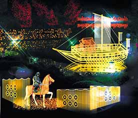 大阪城公園内の極楽橋前には、新たに「侍ミュージアム・武将ホール」が完成。最新の映像技術を使って400年前の合戦の様子を映像体験できるほか、ダイナミックな大阪城空撮映像を見ることができます。西の丸庭園に設置された直径36mの「西の丸ドーム」では、ジャズコンサートやライブを予定しています。