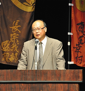 松井知事は「400年前の大坂の陣で大坂は苦い思いをした。今も東京一極集中という言葉を聞くが、大阪と二極になって初めて日本の力を伸ばしていける。天下一祭を機に大阪を盛り上げたい」とあいさつ。橋本市長は「大坂城が落城してから民の力、商の力が育っていった。民都大阪、商都大阪が日本の一翼を担えるよう頑張りたい」。橋爪紳也・実行委員長は「本当の意味での天下分け目の戦いは大坂の陣のこと。この戦があったからこそ、大坂には平穏な時代が訪れた。イベントを通じて大阪城の素晴らしさを国内外に発信していく」と抱負を語りました。