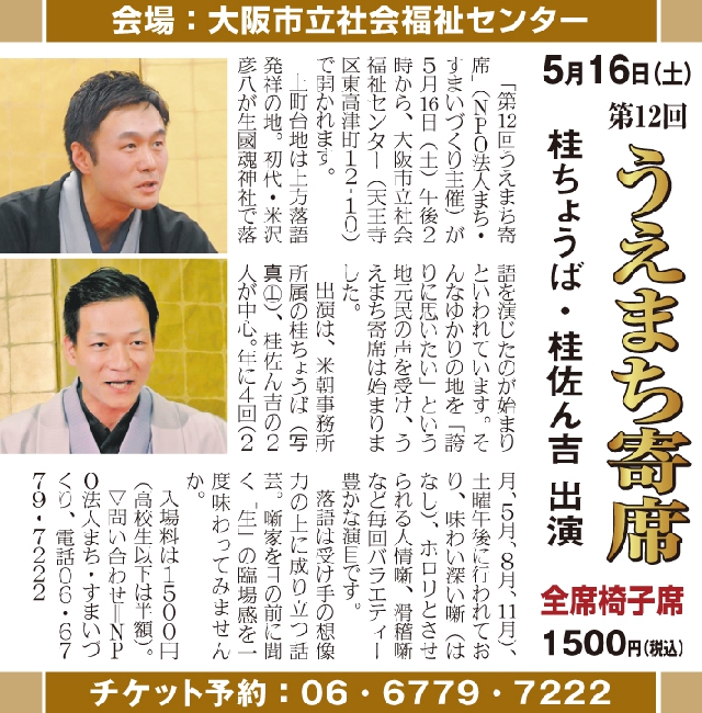 本紙対談企画に登場の旭堂南海さんも出演(右下) あべのハルカス近鉄本店ウイング館9階の「スペース9」で毎月第2、4火曜日に、「~喜楽に落語~ハルカス寄席」が開かれている。生のお囃子が入る本格的な落語を、1部1000円とお試し感覚で楽しむことができる。