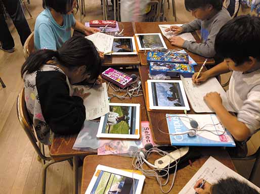 最近、タブレット型端末機が大阪市から40台導入されました。言葉だけでなく視覚的な方法が子どもの頭に入っていきやすい場合もあり、2016年度からICT教育に取り組んでいく予定です。