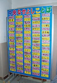 児童会では「中央なかよしことば」を考えました。「すごいね」「大丈夫」「一緒にやろう」「ファイト」など相手を思いやる100の言葉です。日常的に使っていこうと校内の目立つところに張り出しています。