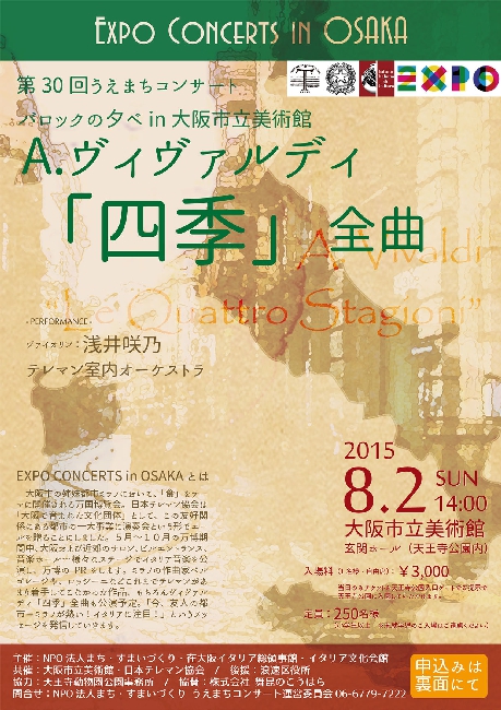 「なにわのヴァイオリニスト」728(なにわ)大使の浅井咲乃が、今回も「なにわの日」コンサートでA.ヴィヴァルディ「四季」全曲に挑みます。毎年進化する浅井の「四季」をご堪能ください。